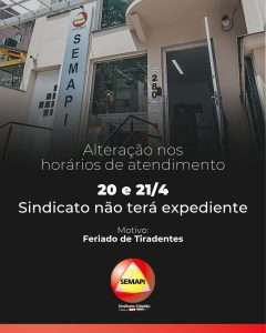 Informamos que, em virtude do feriado de Tiradentes, o SEMAPI