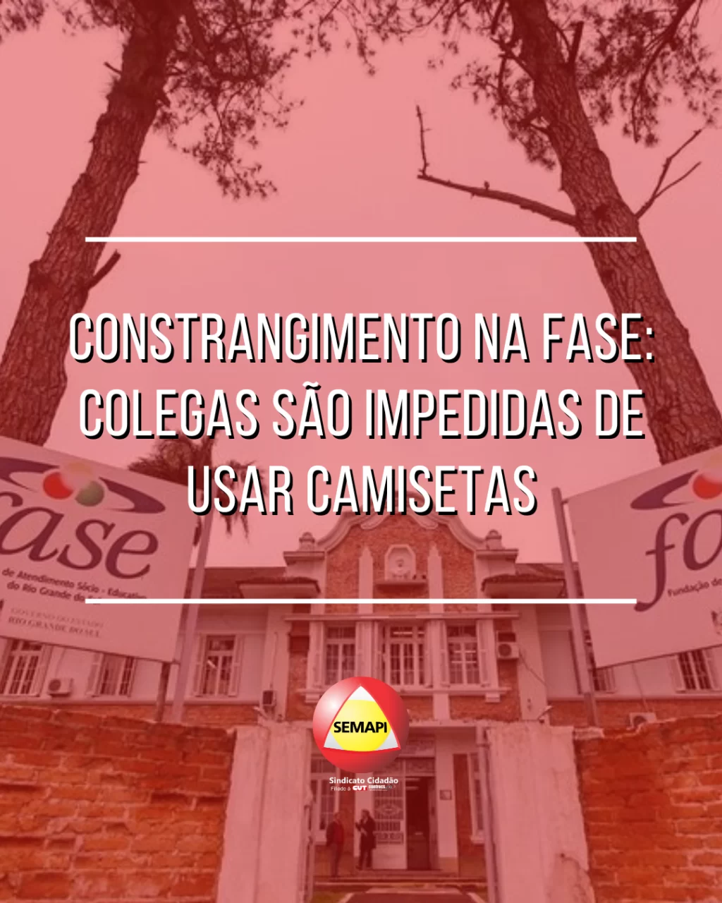 As trabalhadoras foram impedidas de utilizar a vestimenta, apesar de terem consultado previamente a gestão da FASE sobre a política da Fundação e terem recebido autorização para uso. Além disso, outros colegas utilizam mesma camiseta sem nunca terem sido constrangidos. Ainda que reconheça a decisão do Conanda que proíbe vestimentas que se assemelhem às utilizadas no sistema penal, chama a atenção do SEMAPI que apenas um pequeno grupo tenha sido alvo do constrangimento – especialmente porque colegas mais antigos usam a mesma camiseta e há anuência explícita da gestão, registrada em email.