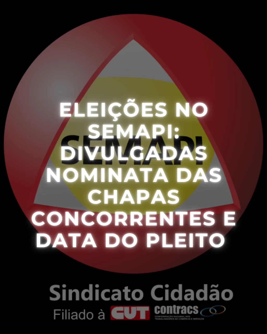 Na última sexta (20), foram divulgadas a nominata dos inscritos para concorrer à eleição para a Diretoria Executiva e para o Conselho Fiscal do SEMAPI, além da data do pleito. As inscrições se encerraram no dia 17/6.