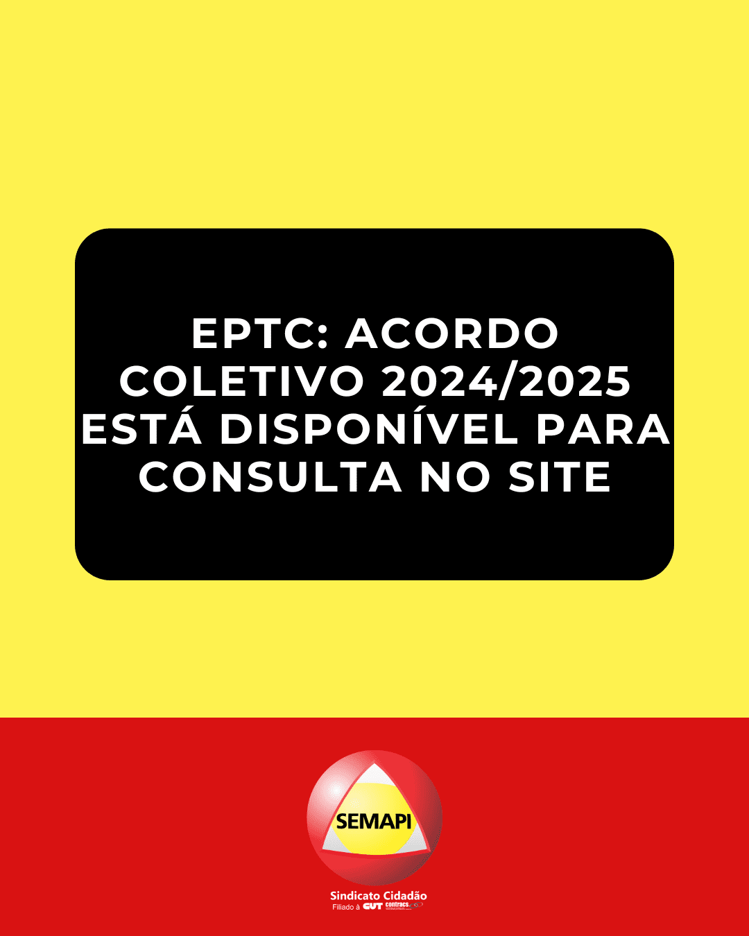 Já está disponível para consulta o Acordo Coletivo de Trabalho (ACT) entre EPTC e SEMAPI para a data-base 2024/25. O documento também foi enviado ao Ministério do Trabalho e Emprego para inserção no sistema mediador.