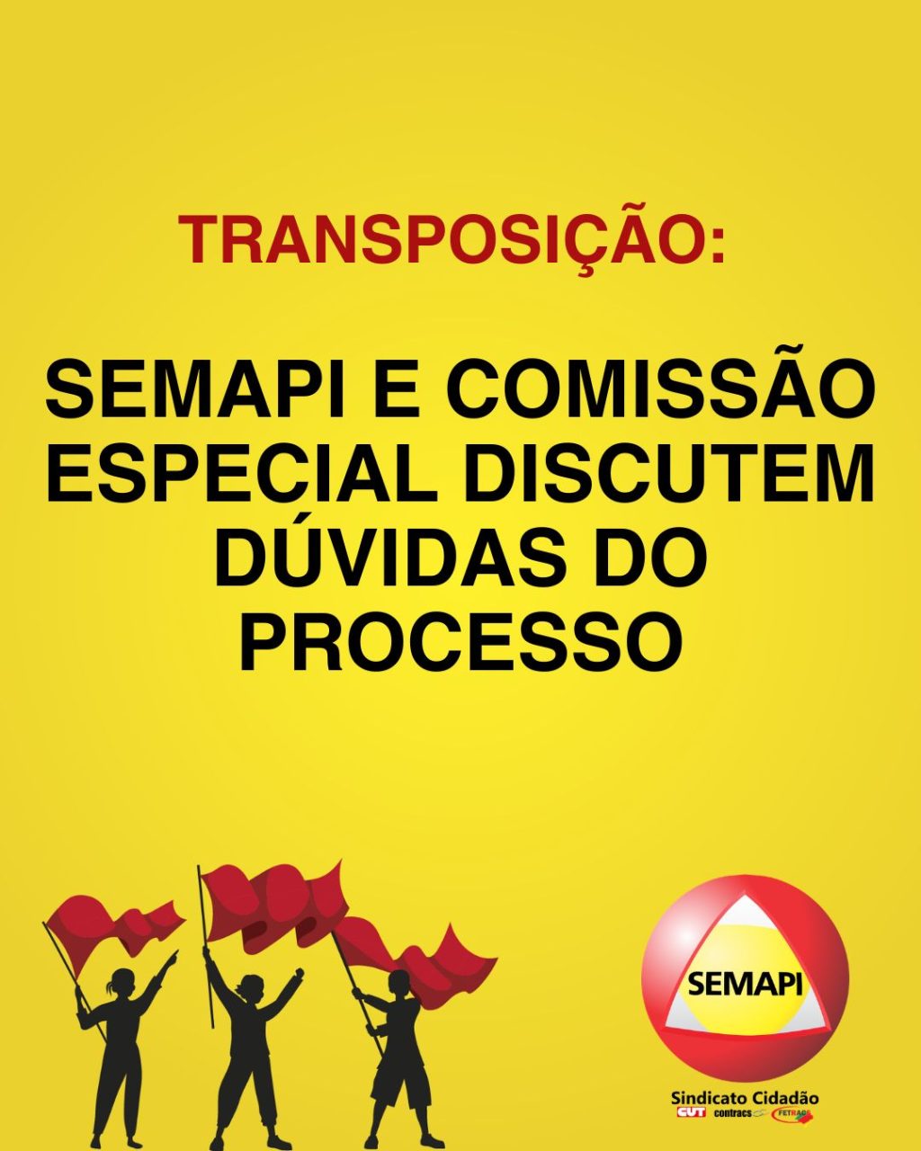 O Sindicato está programando uma LIVE para retirar dúvidas dos colegas das ativas no próximo dia 23/4. As perguntas podem ser enviadas para o email transposicao@semapirs.com.br até o dia 19/04. Fique atento aos nossos canais de comunicação para saber mais detalhes. Seguimos em busca de garantir direitos!