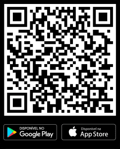 Para baixar, basta apontar a câmera para o QR Code e ser direcionado para sua loja de aplicativos. Depois de instalar, é só abrir o app, digitar o CPF e cadastrar a senha de primeiro acesso.