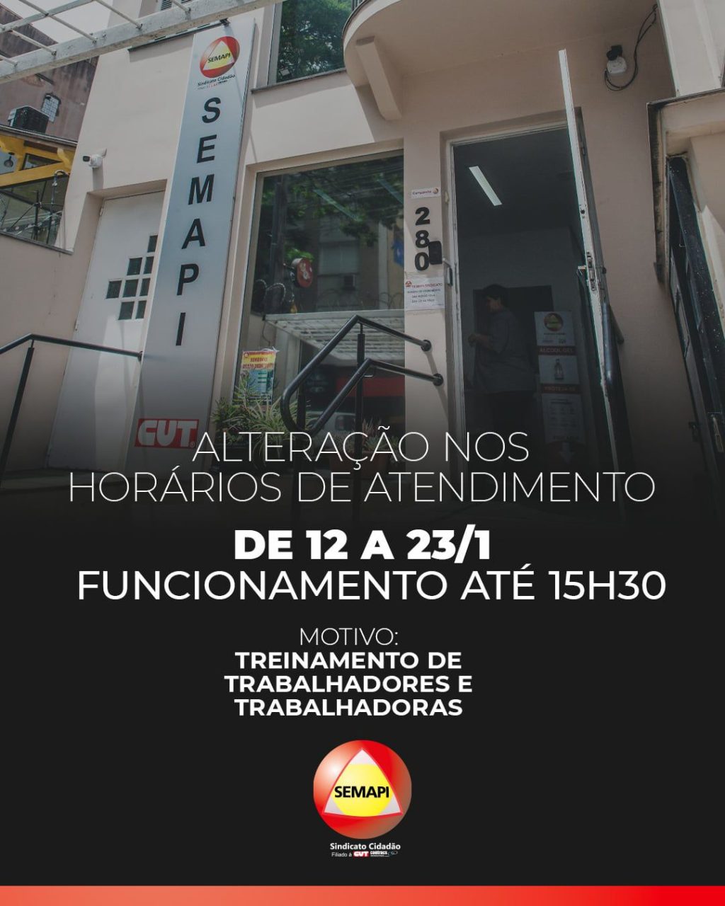 Durante esse período, os trabalhadores do Sindicato estarão em treinamentos para qualificar o atendimento à categoria.