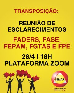 Chegou a vez de colegas de FADERS, FASE, FEPAM, FGTAS e FPE tirarem suas dúvidas sobre o andamento do processo de transposição. Na próxima terça