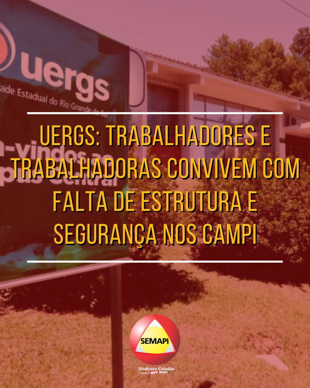 Fundada em 2001 com um modelo multicampi para democratizar o acesso ao ensino superior em todo o Estado, a UERGS tem enfrentado cada vez mais dificuldades em virtude da falta de investimentos por parte do governo Leite. A cada dia, o SEMAPI recebe mais denúncias de sobrecarga de trabalho, falta de estrutura e insegurança em suas unidades.